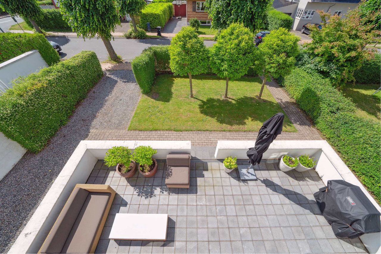 Den fortrinlige have er med flisebelagte stier omkring huset, som blandt andet leder til to af ejendommens tre skønne terrasseområder. Den største af terrasserne er sydvendt og flisebelagt med en muret halvvæg omkring, hvilket giver et trygt og lækkert område til afslapning. På modsatte side af huset finder man en mindre træterrasse med hvidt rækværk og en trappenedgang til haven, som består af en græsplæne med et loungeområde.