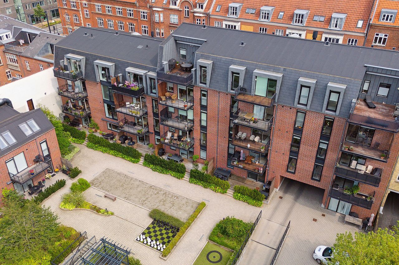 Det bliver ikke meget mere centralt i Odense end Klostervej 28E, hvor man bor helt tæt på midtbyen, gågaden, Kongens Have og Banegården. Det moderne byggeri er fra 2009, og denne lækre lejlighed ligger på andensalen. Hjemmet er flot og har dertil en stor altan med udsyn til det fantastiske gårdmiljø, som er velanlagt med masser af kroge, grønne områder og hyggelige aktiviteter.