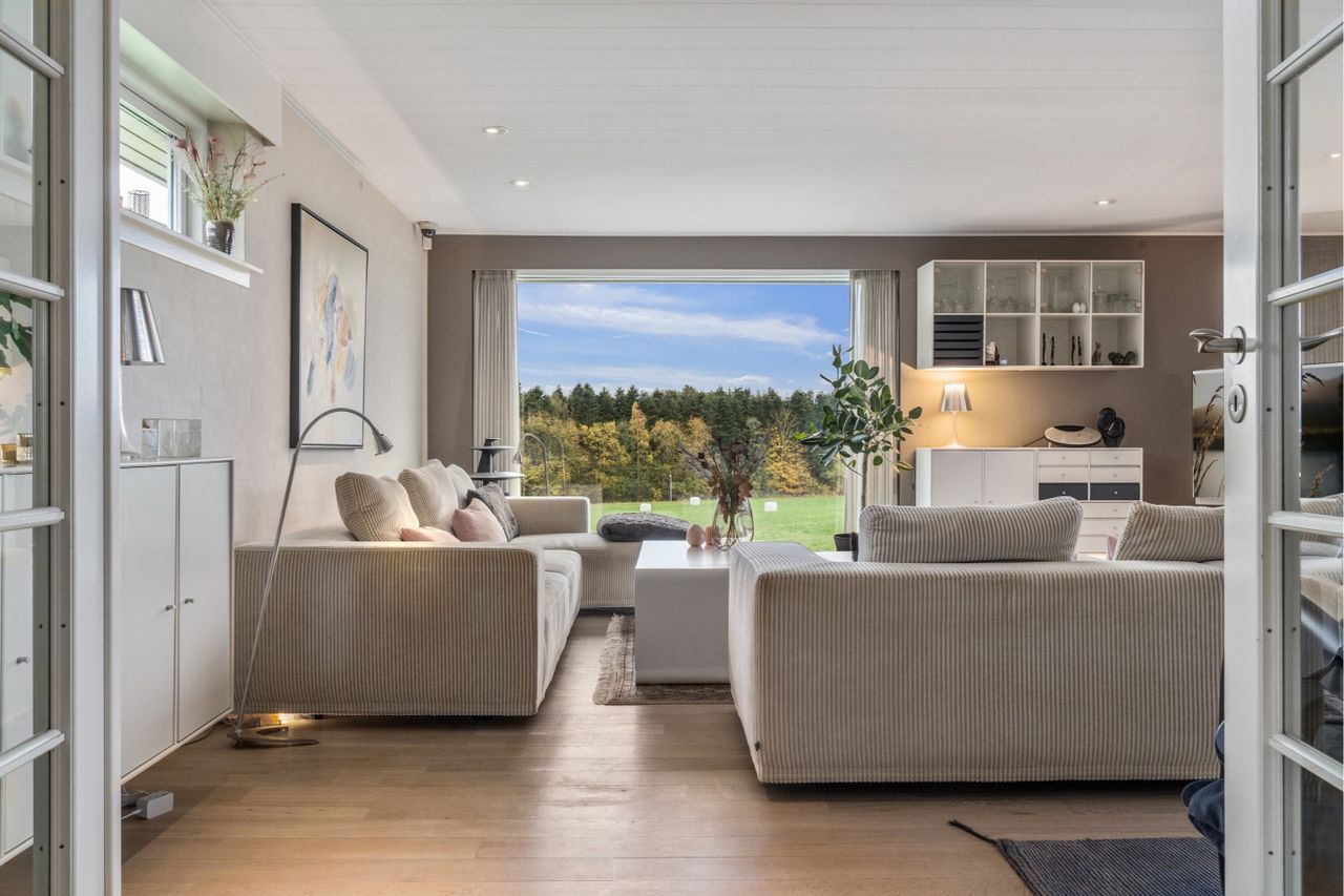 stue løftes sløret for udsigten via et vældigt vinduesparti, som samtidig bidrager med fantastiske
