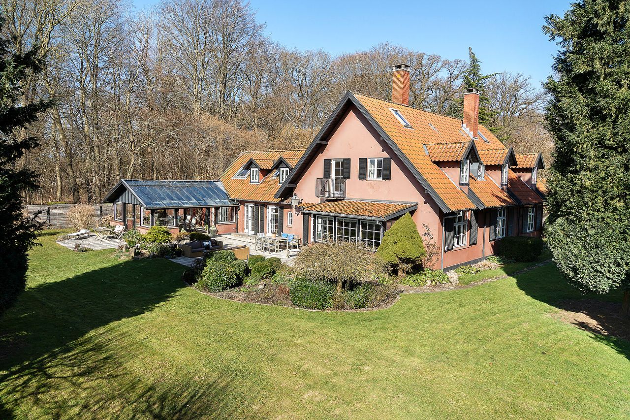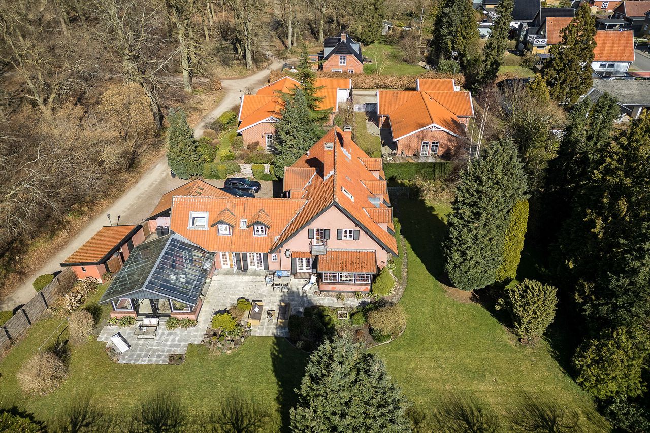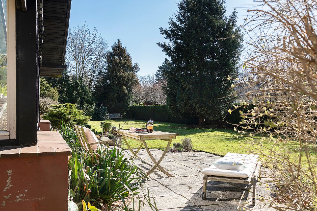 Nærheden til skoven er den måske allerstørste herlighedsværdi ved ejendommen her på Hans Appels Vej 7, for det er blot at åbne døren, så er I dér. En gang lå huset i skov, og nu er der fældet træer, så I også har den skønneste have på den 1.783 kvadratmeter store grund, hvor der ud over enkelte store træer, smukke stauder og rododendronbuske med blomster i tre forskellige farver også er en fantastisk gård og flere terrasser, herunder en mægtig stor overdækket, hvor I kan sidde i læ og nyde solen fra syd. Desuden byder grunden på en garage, hvor I kan have en veteranbil stående beskyttet mod nysgerrige blikke og et isoleret skur, hvor I kan opbevare masser af ting og sager.