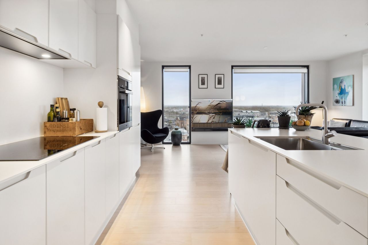 Det er ikke uden grund, at TBT Tower er blevet lidt af et vartegn i Odense, da det indtil foråret 2024 var byens højeste bygning. Placeringen i krydsfeltet mellem havnen og den utroligt charmerende gågade er ligeledes en ganske enestående kvalitet, og det bliver således med en storslået udsigt over hele byen, at I overtager denne stilrene og eksklusive lejlighed på 10. etage. Der er mulighed for at tilkøbe egen p-plads i parkeringskælder. Der vil være mulighed for at tage elevatoren direkte fra parkeringskælderen op til din nye lejlighed.