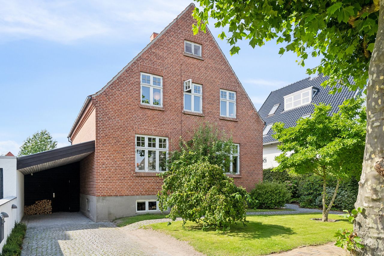 Materialevalget er særdeles gennemført i villaen, hvor man i stueplanet finder et fantastisk Garde Hvalsø snedkerkøkken i elmetræ med ølandsflisegulv, matsort bordplade i Nero Assoluto granit og væghængt Vola armatur i børstet stål, hvilket ydermere er gennemgående på toilettet og badeværelserne. Køkkenet er desuden lavet med tanke på madentusiasten, da der er gaskogeø fra Ilve, to ovne og to opvaskemaskiner fra Fisher & Paykel samt en smuk pejseindsats og dobbeltdør ind til den lyse stue, som har endnu en pejseindsats. Førstesalen byder derudover på tre værelser og et stort badeværelse, som i 2024 blev renoveret med marmorfliser i sildebensmønster i både brusenichen og bag det væghængte toilet.